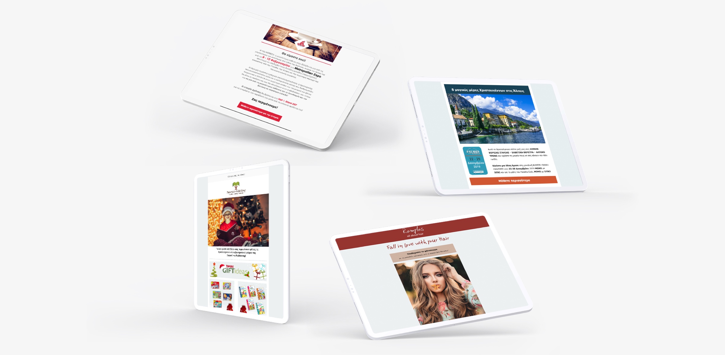 Μέσα από την πολυετή εμπειρία αλλά και τη συνεχή εκπαίδευση στα σύγχρονα εργαλεία marketing, σχεδιάζουμε καμπάνιες email marketing που αποδίδουν τα μέγιστα, τόσο για την εταιρεία σας και για τα προϊόντα σας.